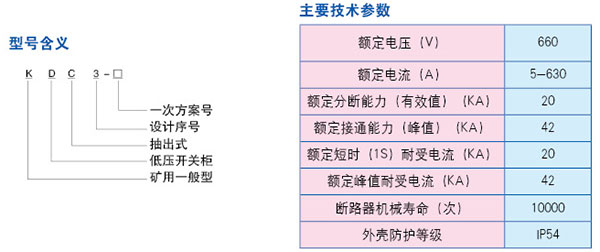 KDC3礦用一般型抽出式低壓開關(guān)柜適用于煤礦井下無瓦斯、煤塵爆炸危險場所或其它類似的工業(yè)生產(chǎn)部門,對額定電壓至660V、額定頻率作為50Hz的三相交流低壓配電系統(tǒng)中作為動力、配電、照明、電機及其它電氣設(shè)備的起動、控制和保護的開關(guān)設(shè)備及電源變換設(shè)備。